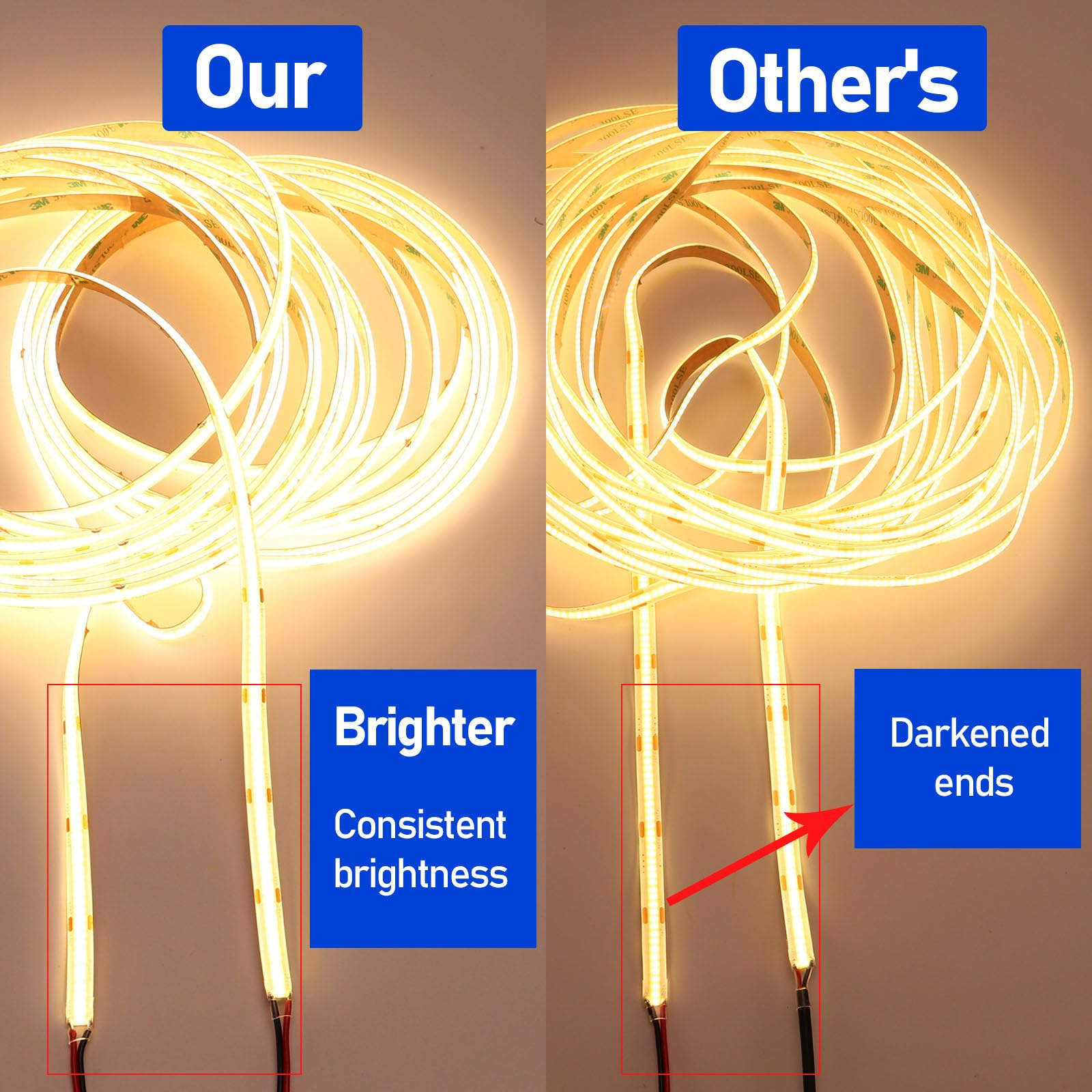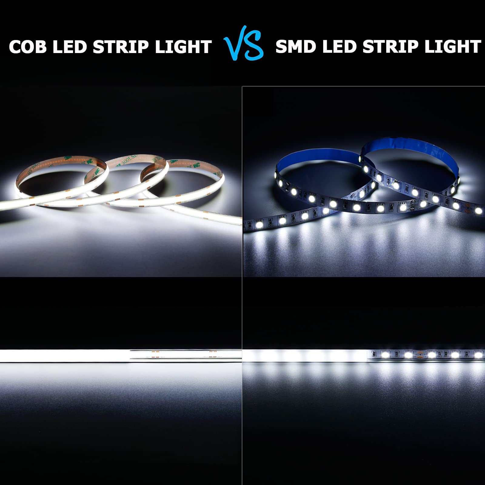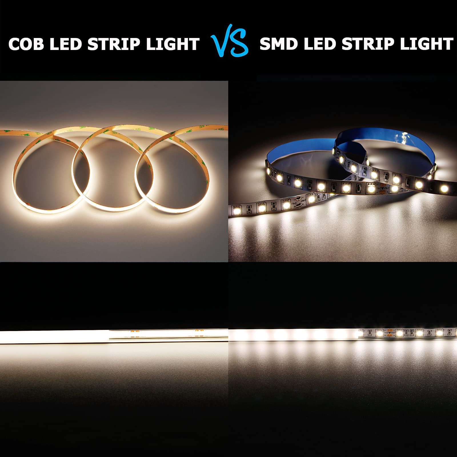 - 3840LEDs/32.8ft(10M) COB light strips have more dense LED chips, Which make the emitting units nprecedentedly close to each other, and create super even lighting performance. At the same time, it brings higher luminous efficiency.
