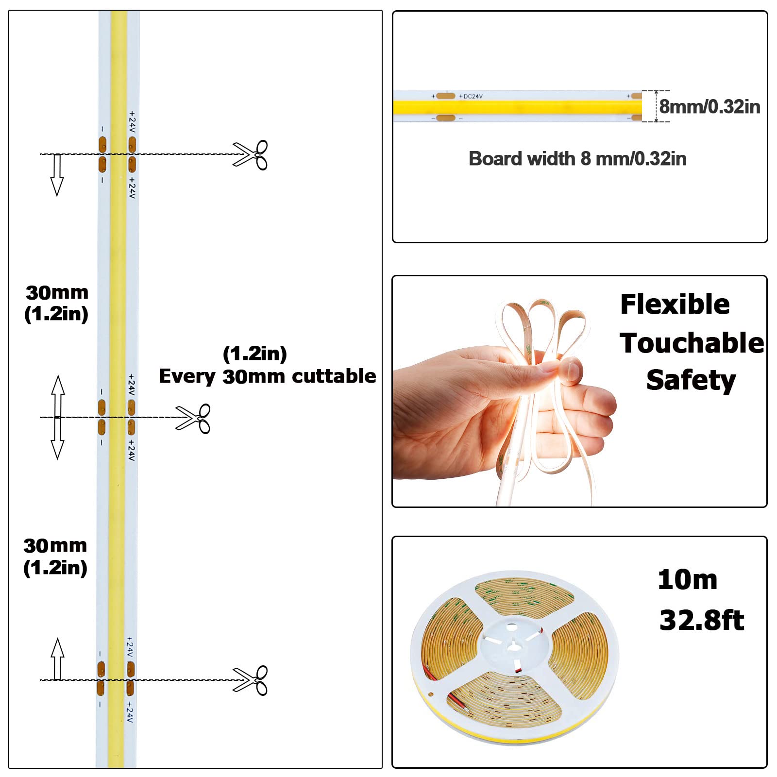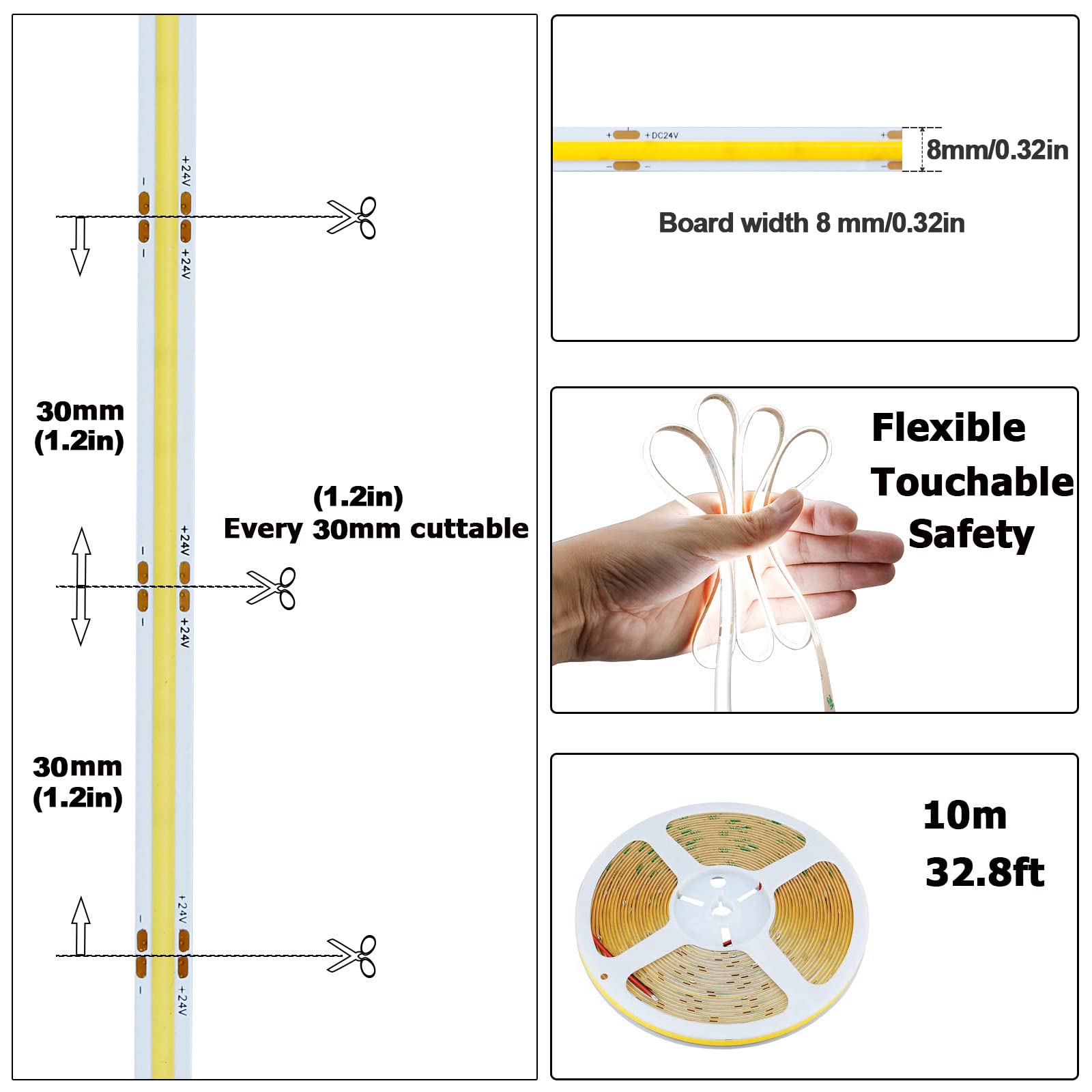 DC 24V COB LED Strip Light 32.8ft(10M) without voltage drop