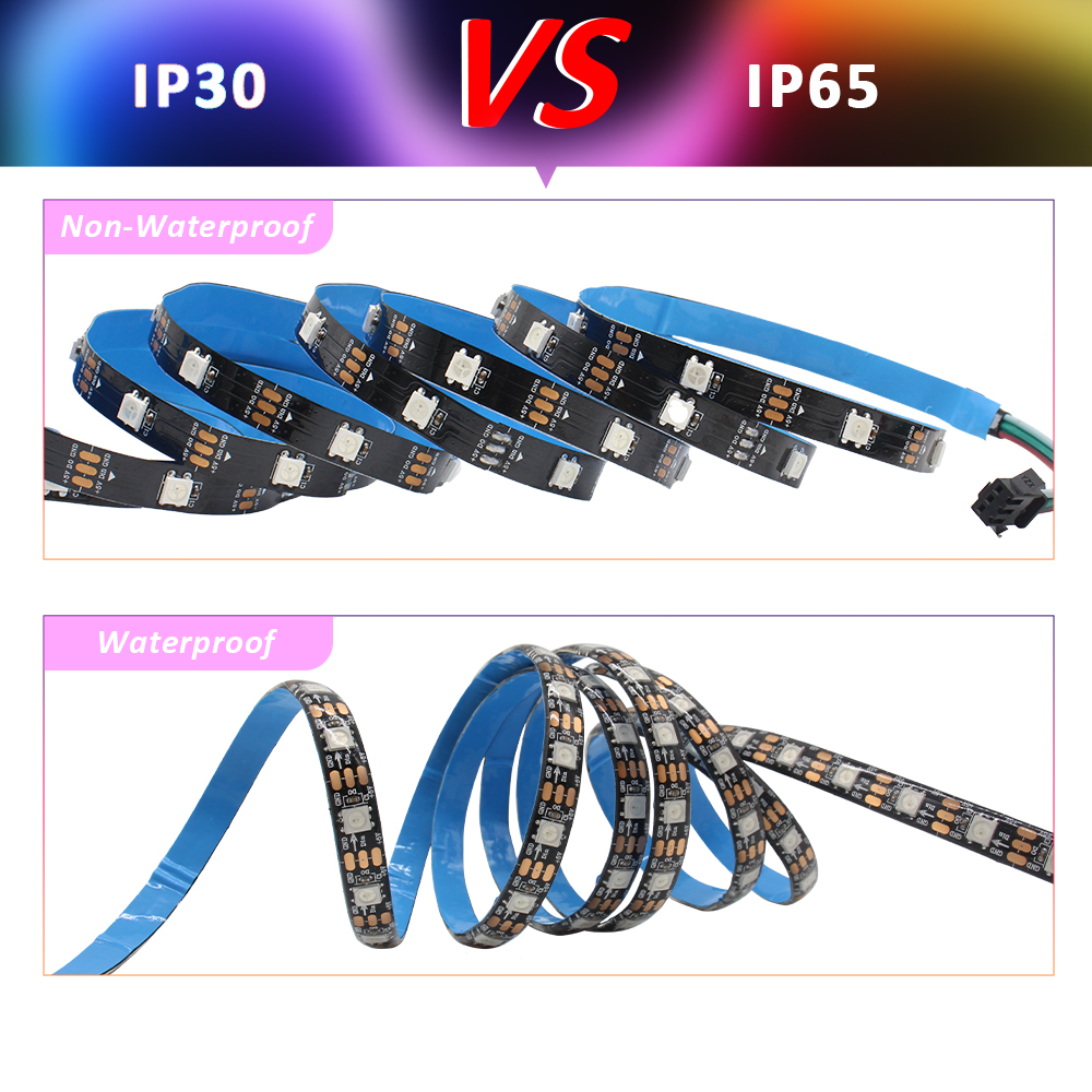 5050 RGB LED Strip Addressable DC 5V 3pin WS2812B IC 60 LEDs/M 30LEDs/M IP30 IP65 Lamp Waterproof Light Tape Chip LED 5M Digital