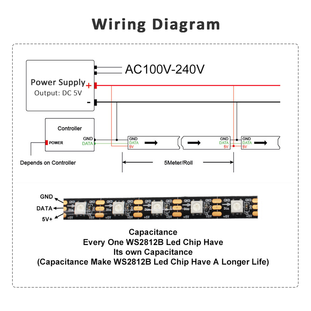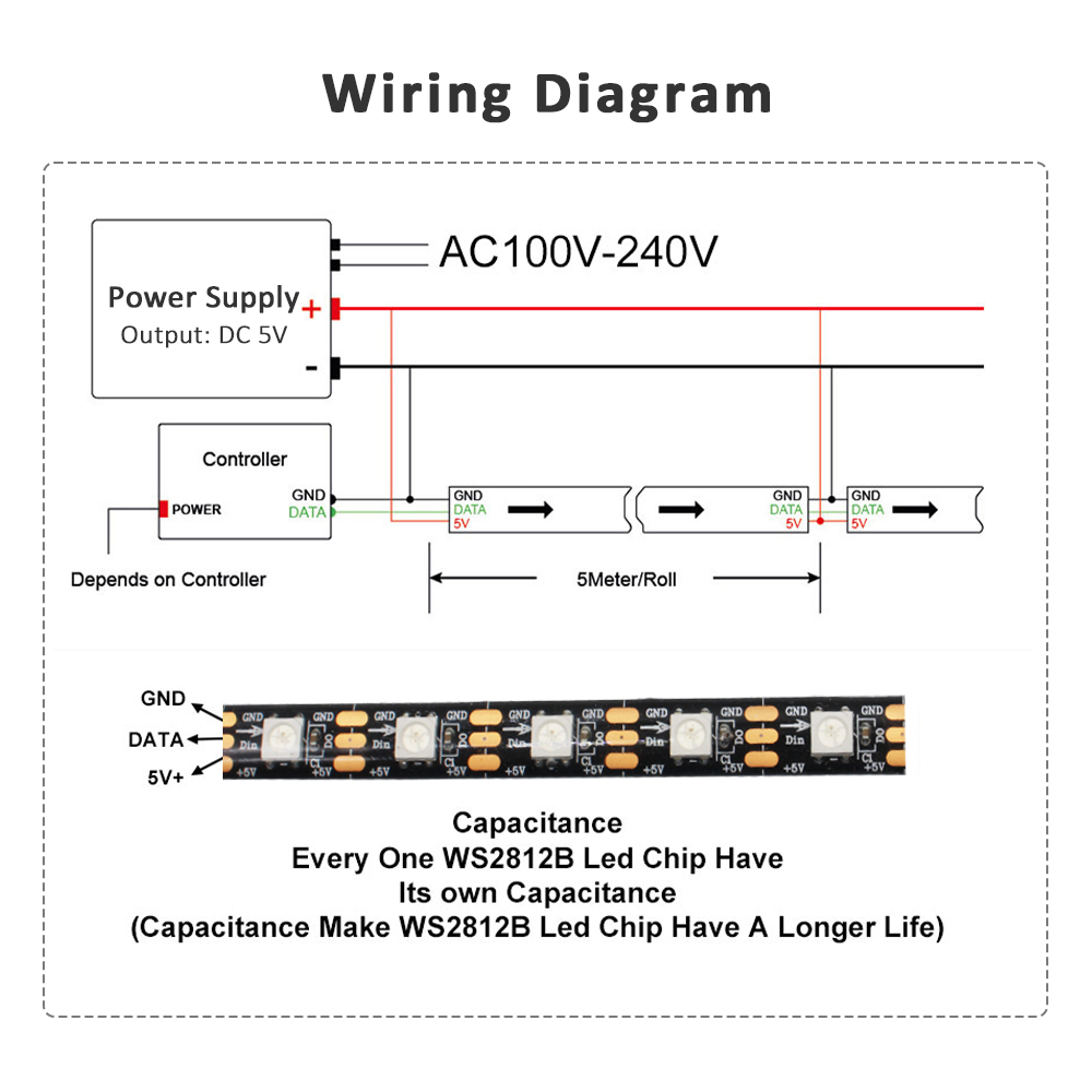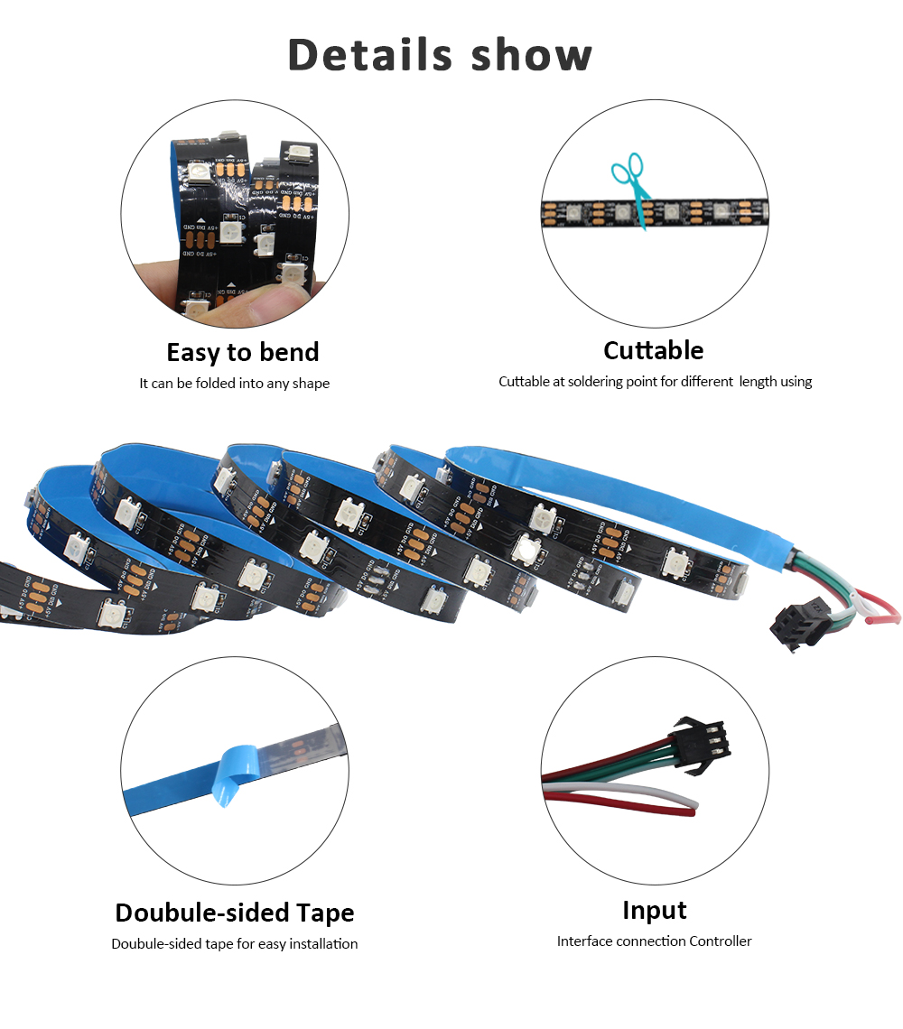 Be the first to review “5050 RGB LED Strip Addressable DC 5V 3pin WS2812B IC 60 LEDs/M 30LEDs/M IP30 IP65 Lamp Waterproof Light Tape Chip LED 5M Digital” Cancel reply