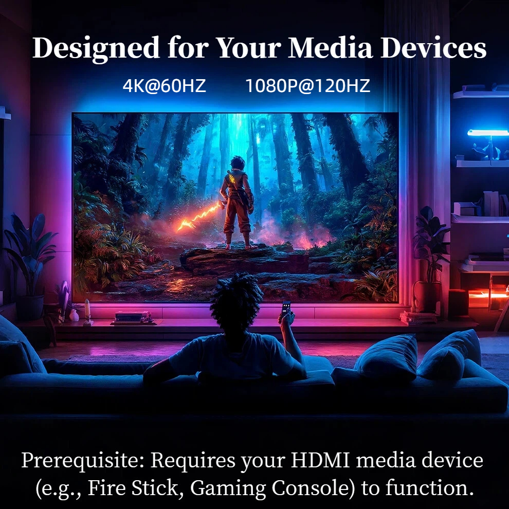 ✅ Real-Time HDMI Sync: Seamlessly connects via HDMI 2.0 to TVs, gaming consoles (PS5, Xbox, Switch), streaming devices (Apple TV, Fire Stick), and more. Colors shift instantly to match on-screen action, boosting immersion for movies, shows, and competitive gaming.