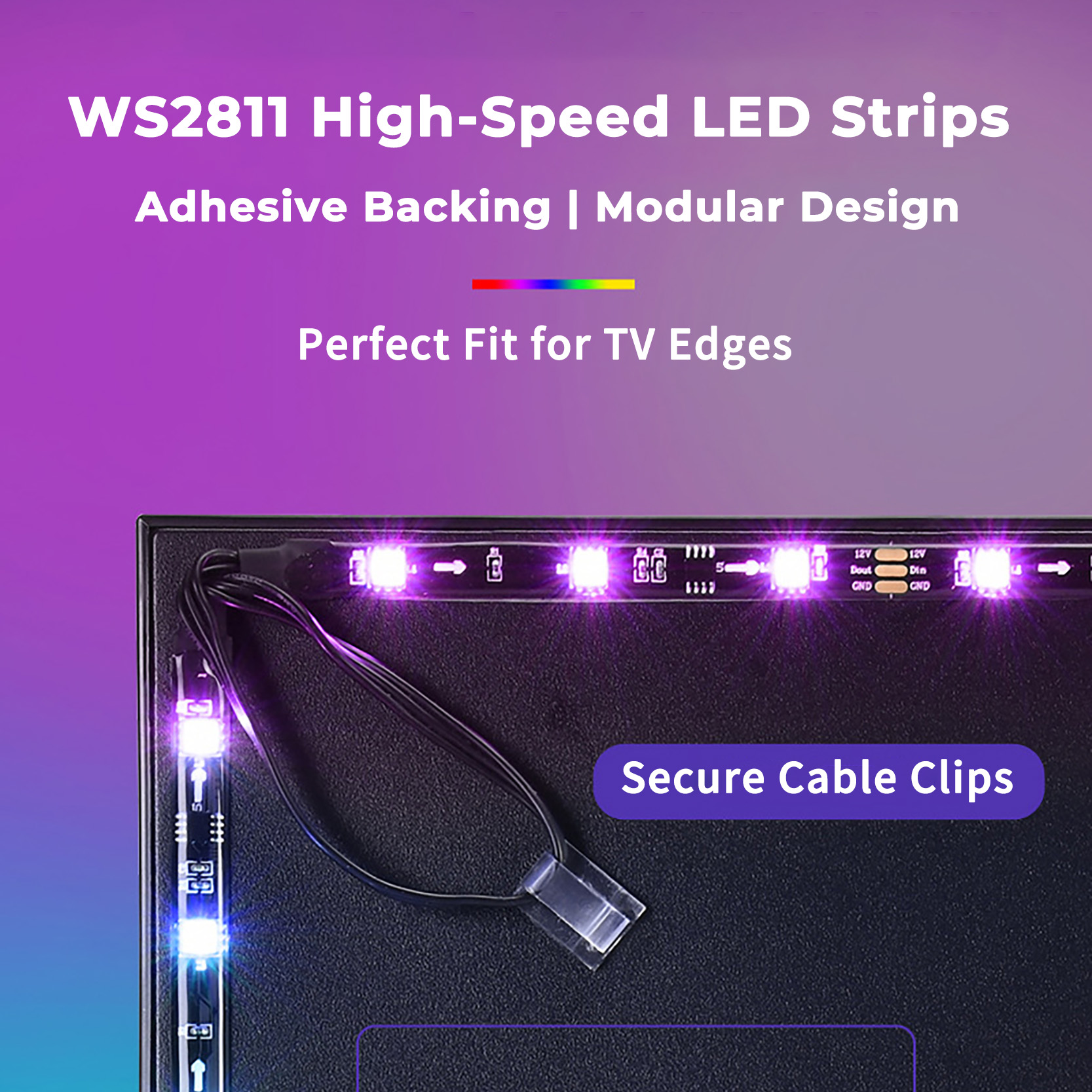 ✅ Plug-and-Play Versatility: Compatible with 40–85” TVs. Customize brightness, speed, and 16 million colors to match your vibe.