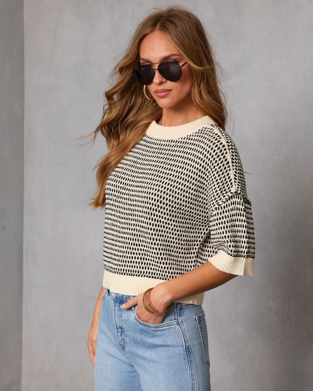 Home Short Sleeve Sweater Marinda Contrast Knit Sweater