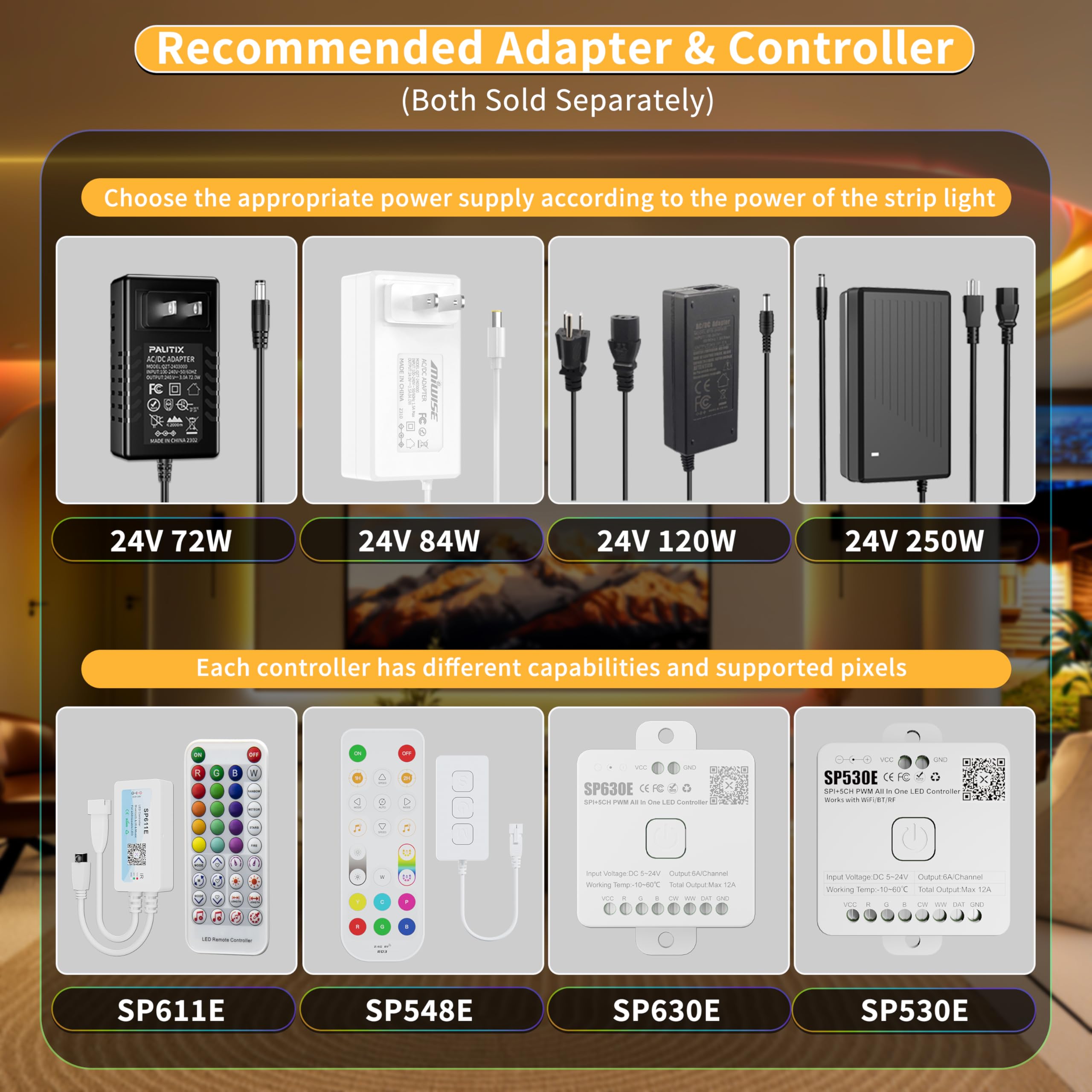 24V RGBIC 16.4ft/5m, 24V RGBIC 24ft/7.5m, 24V RGBIC 32.8ft/10m, 24V IP65 Waterproof RGBIC 16.4ft/5m, 24V IP65 Waterproof RGBIC 24ft/7.5m