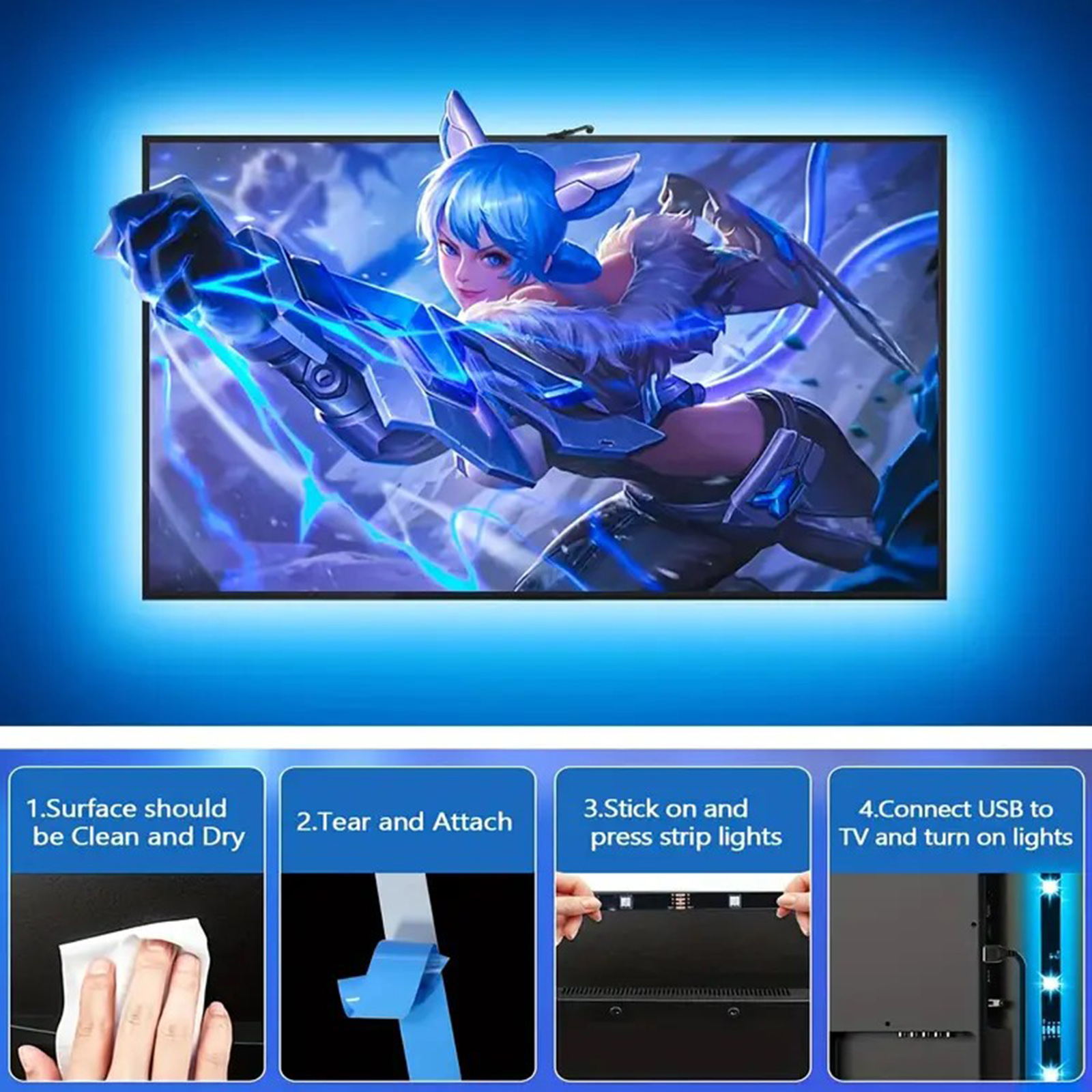 Easy Installation: Installation is easy and user-friendly, taking less than 10 minutes to install. The TV backlight can be firmly installed on any (3.8M meter is suitable for 55-65 inch TV), (5M is suitable for 65-85 inch TV).