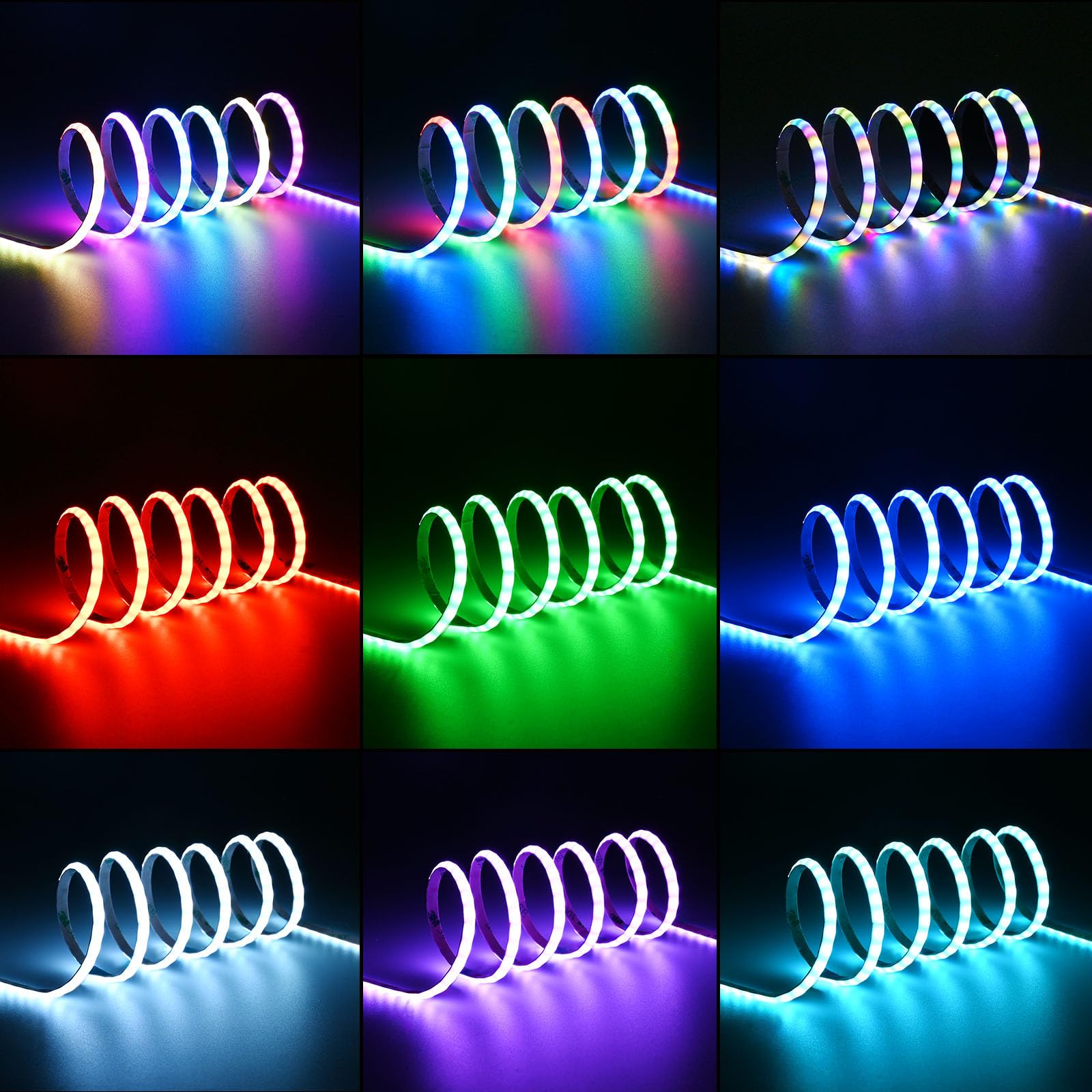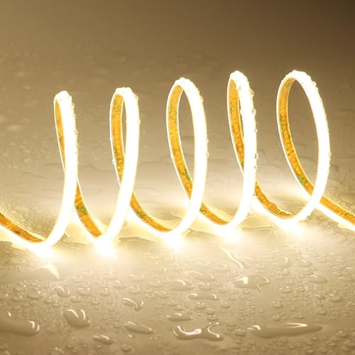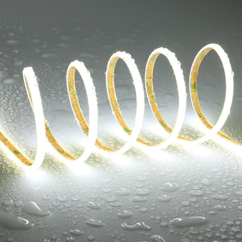 · 【High brightness】 High density 400LED/M, 2000LED/5M COB LED strips can achieve a brightness of 3000lm, 180 degrees beam angle design for 50% wider lighting,multiple chips on board for uniform illumination,NO MORE worries about dark spot!