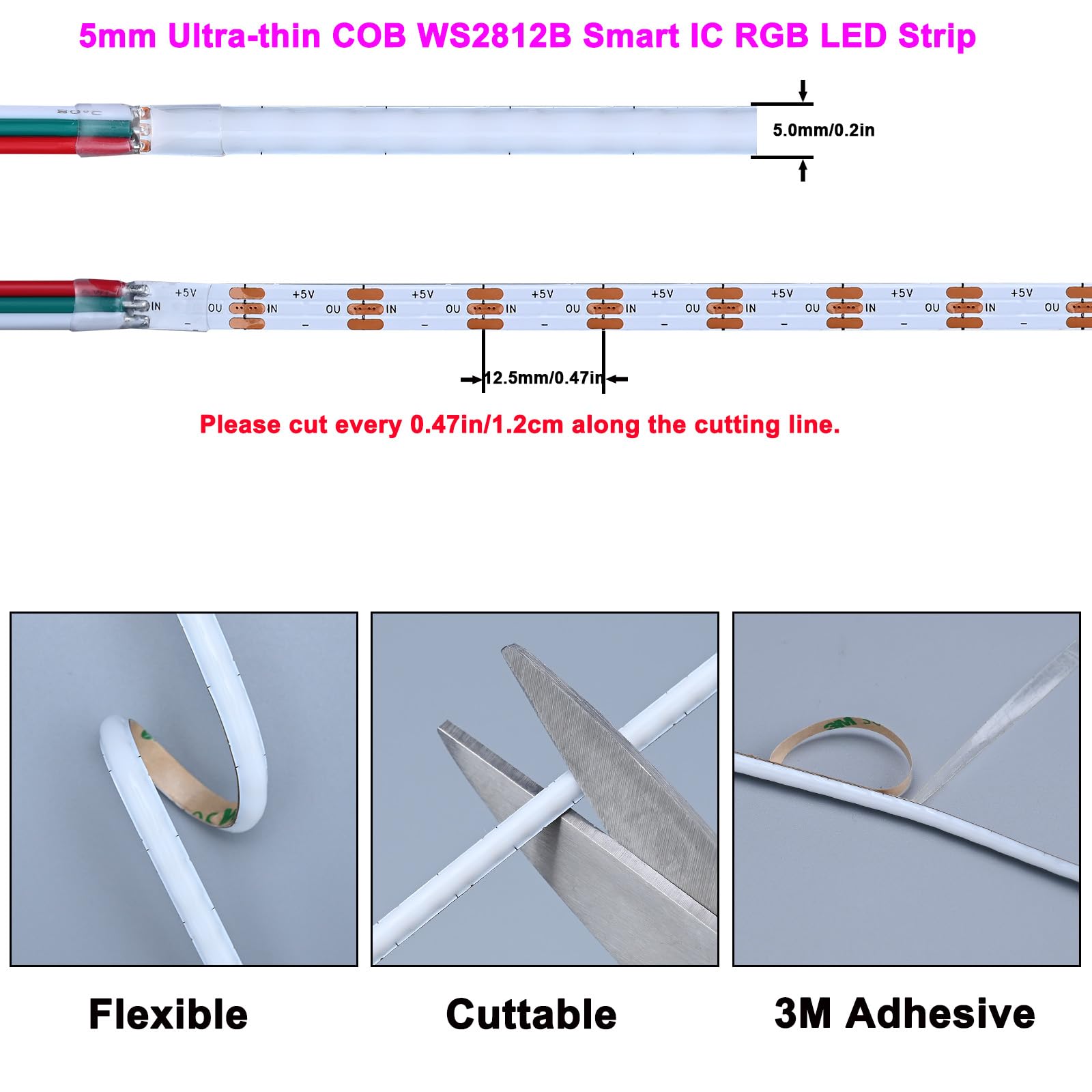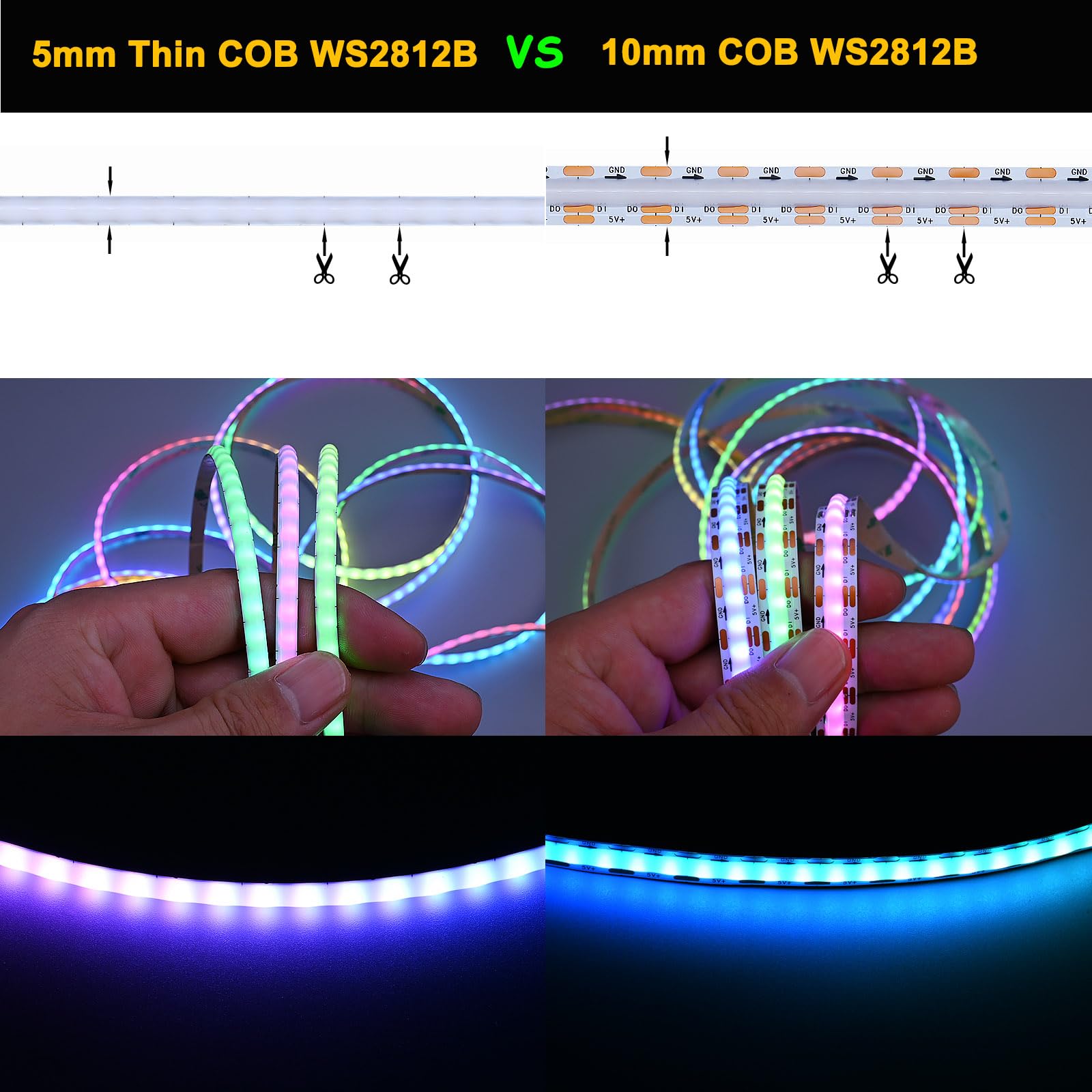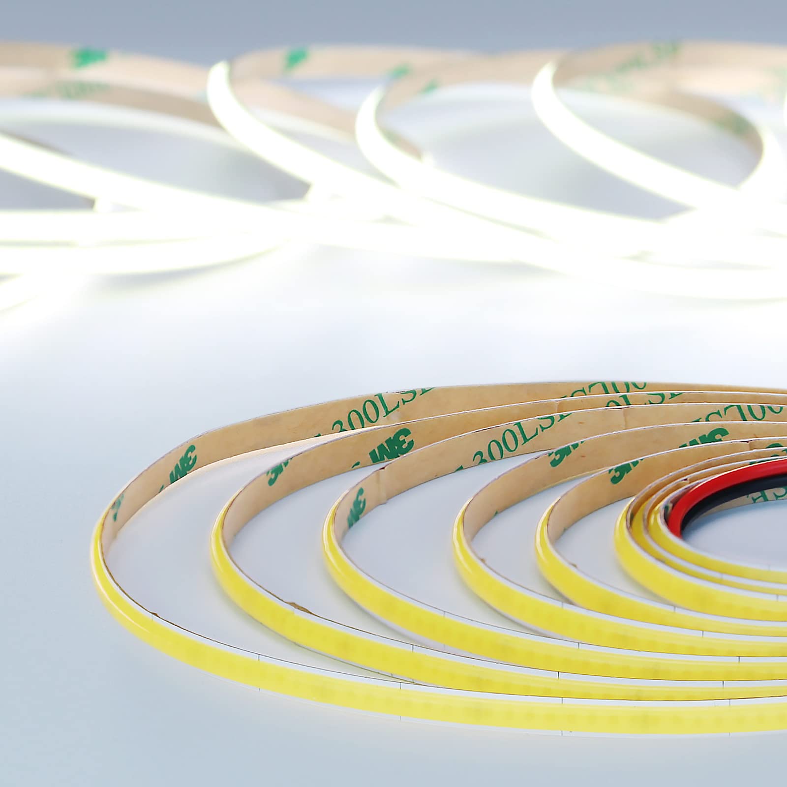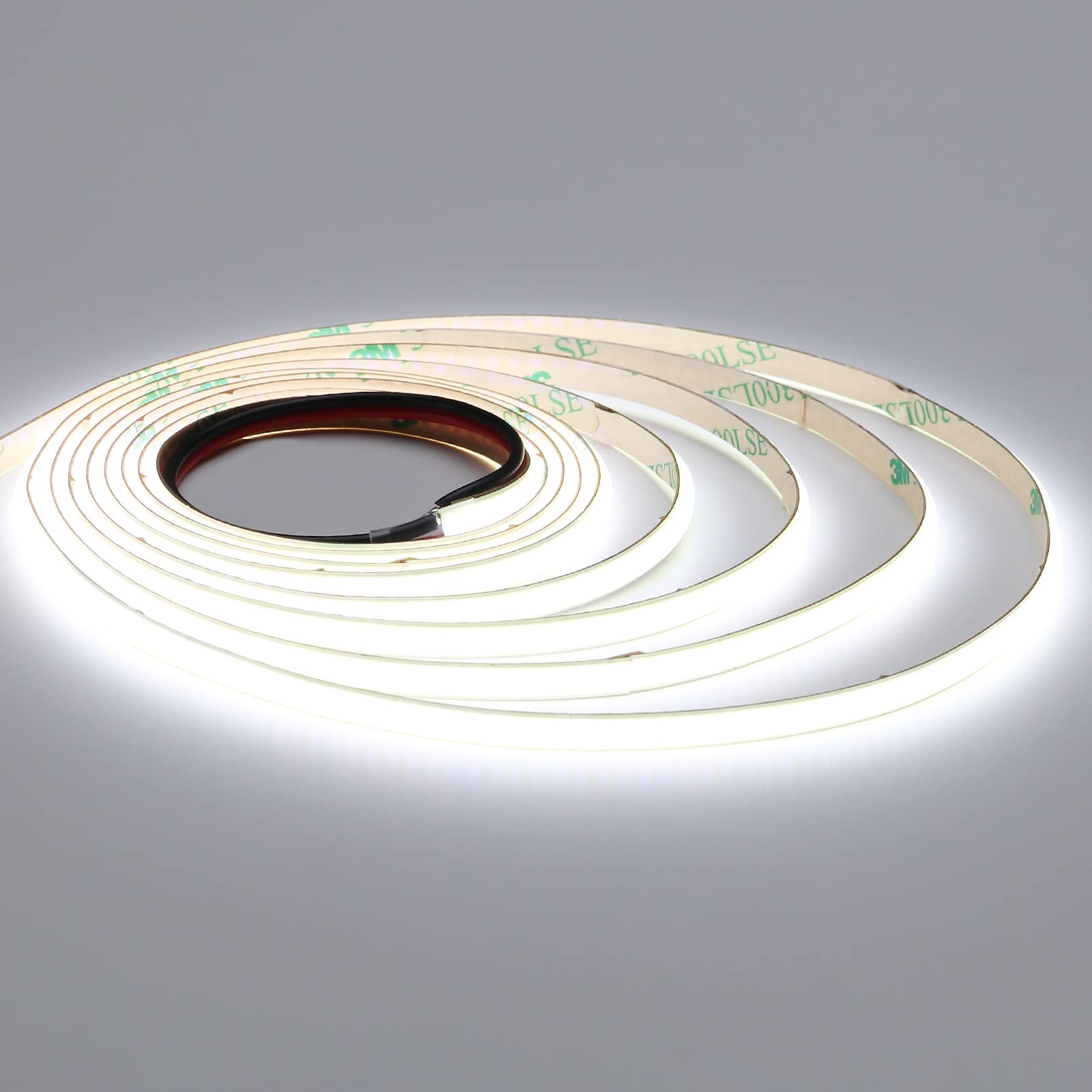 · 【Narrow PCB 5mm Width】The width of this COB light strip is only 5mm, while the width of ordinary COB light strip is 8mm.Compared with the general 8mm COB strip,the narrower 5mm allows you to install more easily,suitable for narrow spaces.