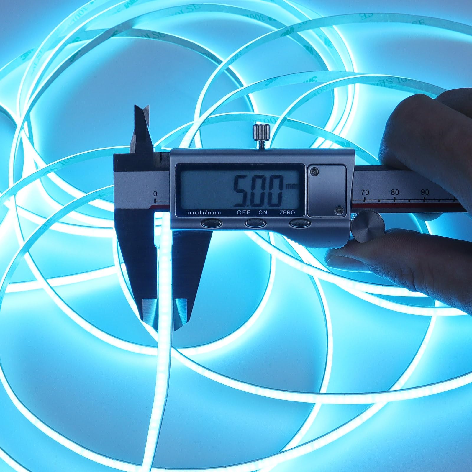 HAMRVL COB LED Strip Lights Ice Blue, DC12V 16.4ft/5M 320leds/M CRI90 Bright Flexible LED Tape 8mm, for Indoor Home Cabinet, Bedroom, Kitchen, Stage, Backlight DIY Lighting(Without Power Supply) $96.12 – $109.86
